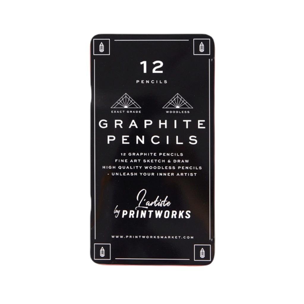 12 solidnych ołówków grafitowych (znanych również jako ołówki bezdrzewne) odpowiednich do szkicowania, rysowania i cieniowania. Zestaw zawiera 12 różnych jakości od twardych do miękkich.