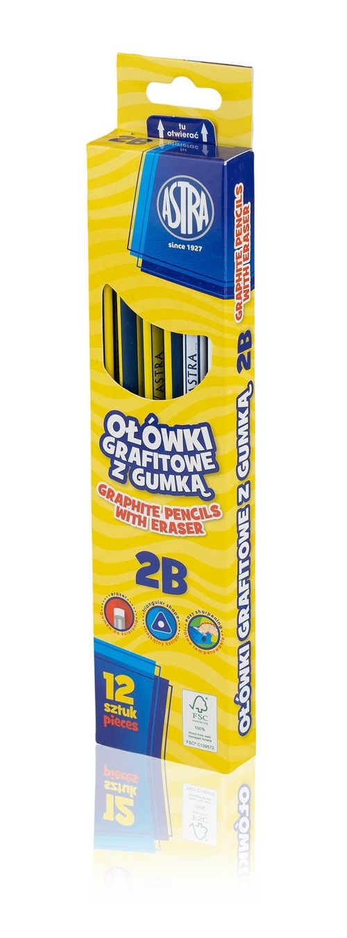 Opakowanie Ołówki grafitowe z gumką 2B (12szt) ASTRA