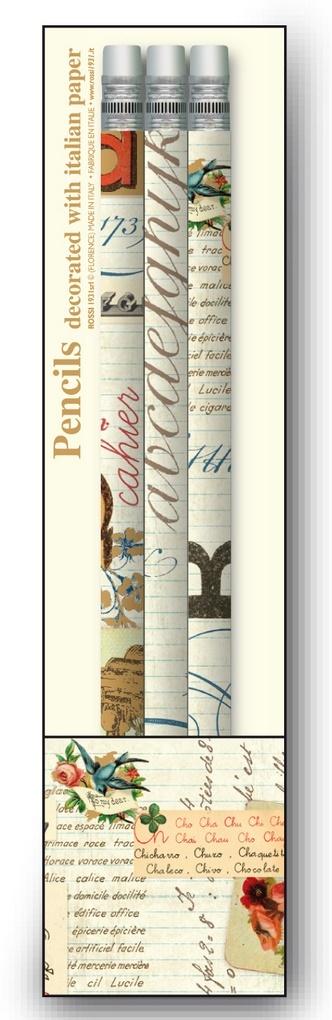 Zestaw 3 ozdobnych ołówków ręcznie owiniętych w dekoracyjny włoski papier. Produkt z ekskluzywnej galanterii wyprodukowany we włoskiej manufakturze.