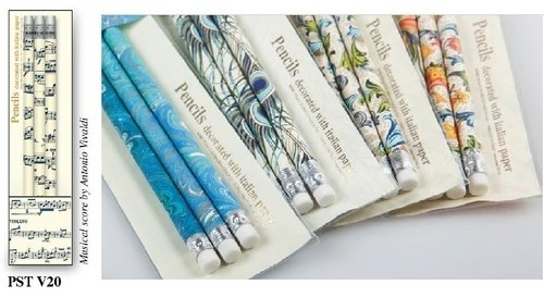 Zestaw 3 ozdobnych ołówków ręcznie owiniętych w dekoracyjny włoski papier. Produkt z ekskluzywnej galanterii wyprodukowany we włoskiej manufakturze.