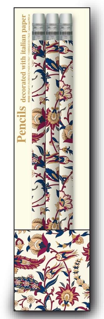 Zestaw 3 ozdobnych ołówków ręcznie owiniętych w dekoracyjny włoski papier. Produkt z ekskluzywnej galanterii wyprodukowany we włoskiej manufakturze.