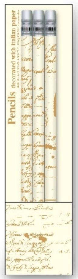Zestaw 3 ozdobnych ołówków ręcznie owiniętych w dekoracyjny włoski papier. Produkt z ekskluzywnej galanterii wyprodukowany we włoskiej manufakturze.