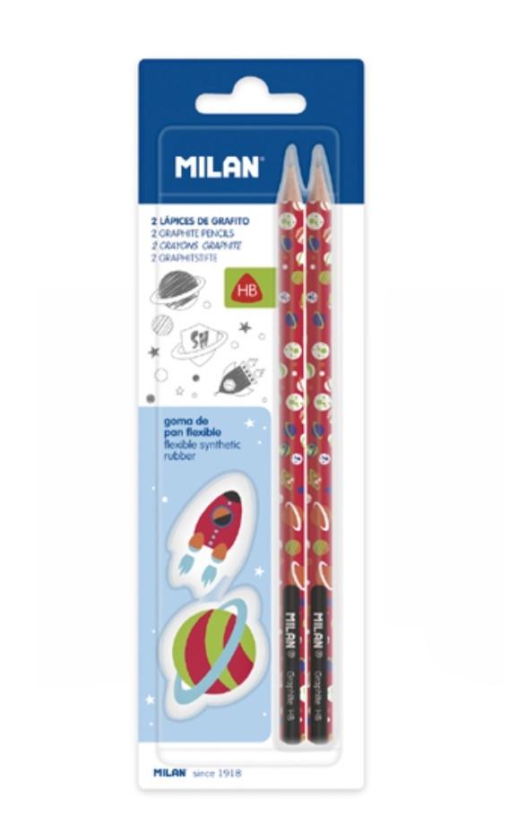 Ołówki trójkątne 2szt + gumki 2szt SHS MILAN