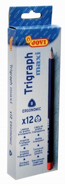 Ołówki trójkątne Maxi B, wygodne w użyciu dzięki swemu kształtowi. Niełamniwe dzieki wklejonemu wkładowi, nie wypadają przy temperowaniu. Bardzo wydajne. długość 175 mm, średnica 10 mm. 12 sztuk w pudełku.