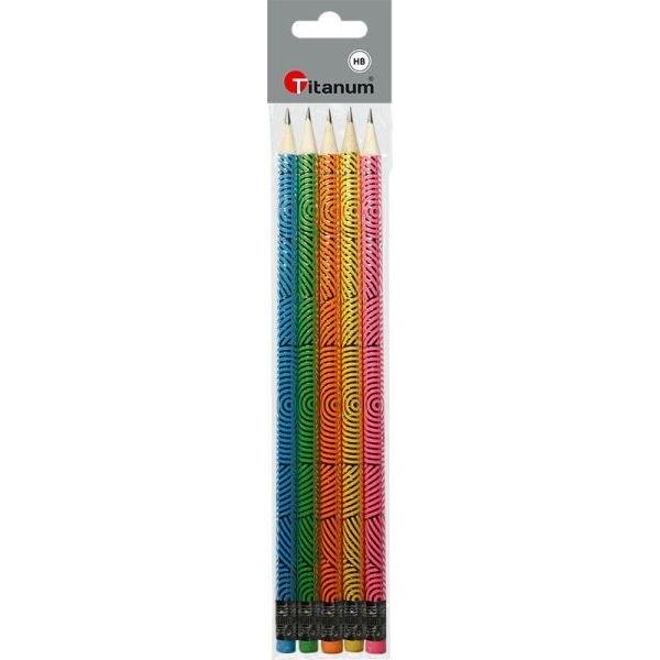 Ołówki z gumką HB okrągłe, wzór: kółka metalizowane mix. 5 kol.