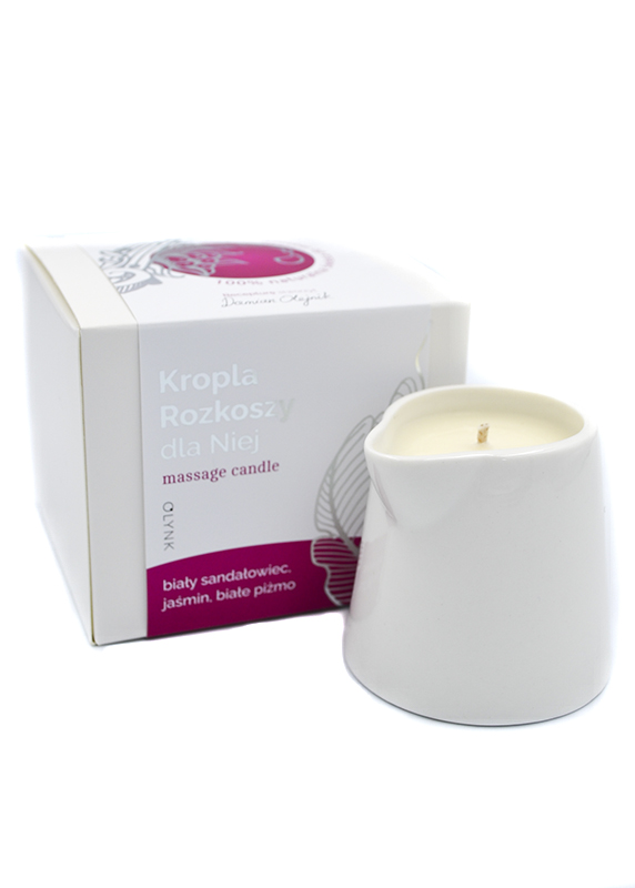Olynk Sojowa świeca premium do masażu biały sandałowiec, jaśmin, białe piżmo 130 ml