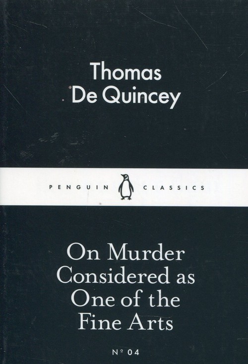 'People begin to see that something more goes to the composition of a fine murder than two blockheads to kill and be killed - a knife - a purse - and a dark lane...' In this provocative and blackly funny essay, Thomas de Quincey considers murder in a purely aesthetic light and explains how practically every philosopher over the past two hundred years has been murdered - 'insomuch, that if a man calls himself a philosopher, and never had his life attempted, rest assured there is nothing in him'. Introducing Little Black Classics: 80 books for Penguin's 80th birthday. Little Black Classics celebrate the huge range and diversity of Penguin Classics, with books from around the world and across many centuries. They take us from a balloon ride over Victorian London to a garden of blossom in Japan, from Tierra del Fuego to 16th-century California and the Russian steppe. Here are stories lyrical and savage; poems epic and intimate; essays satirical and inspirational; and ideas that have shaped the lives of millions. Thomas de Quincey (1785-1859). Thomas de Quincey's Confessions and an English Opium-Eater and Other Writings is available in Penguin Classics.