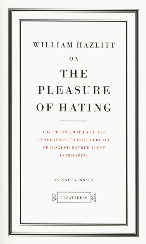 Love turns, with a little indulgence, to indifference or disgust: hatred alone is immortal' William Hazlitt William Hazlitt's tough, combative writings on subjects ranging from slavery to the imagination, boxing matches to the monarchy, established him as one of the greatest radicals of his age and have inspired journalists and political satirists ever since.