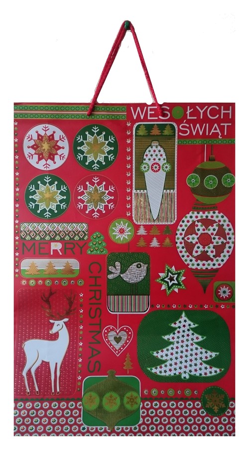 Torba papierowa Wesołych Świat 36x52x10 cm.