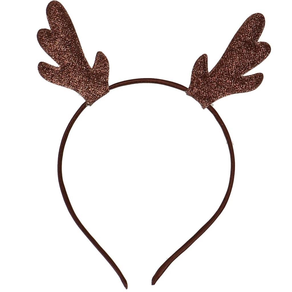 Świąteczna opaska z rogami renifera. Ozdobiona pięknymi rogami wykończone brokatowym materiałem. Sama opaska pokryta tkaniną.