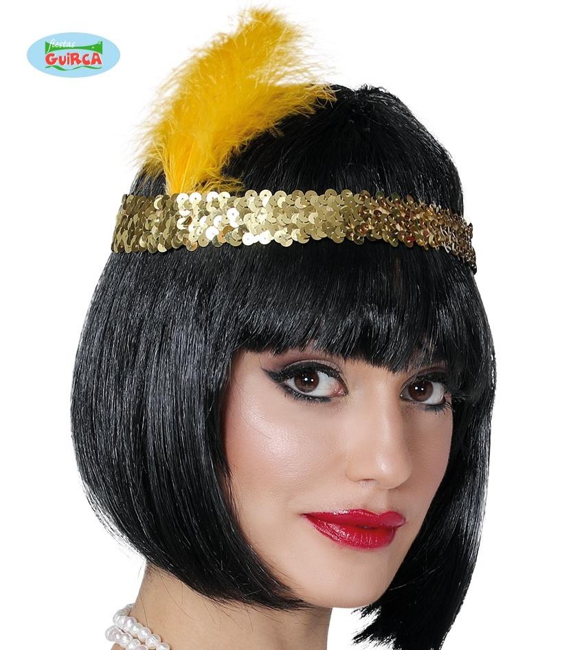 Urocza złota brokatowa opaska na włosy z piórkami, idealna na imprezę w stylu lat 20/30