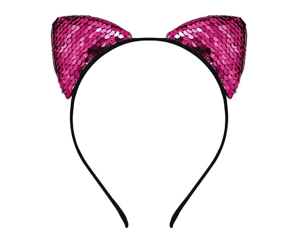 Opaska Kot z cekinami, różowa