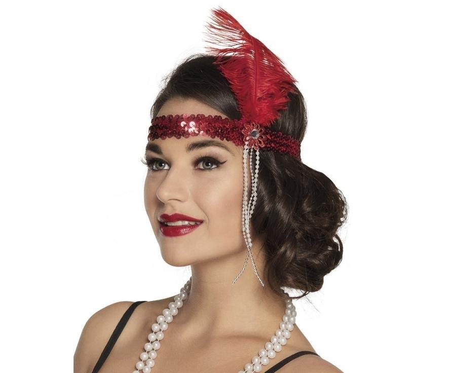 Czerwona opaska z piórkiem... Idealny strój do stylizacji z lat 20stych! Duże piękne piórko, koraliki i błyszcząca opaska będą wyglądać fantastycznie gdy zrobimy z włosów piękny kok! Idealna opaska na zabawy karnawałowe oraz inne okazje :)