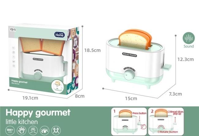 Happy Gourmet - Interaktywny Toster Zabawka z Efektami Dźwiękowymi. Przenieś zabawę w gotowanie na zupełnie nowy poziom z interaktywnym tosterem "Happy Gourmet" z serii "Mała Kuchnia"! Ta urocza zabawka nie tylko wygląda jak prawdziwy toster, ale również oferuje realistyczne funkcje, które zachwycą Twojego malucha. Dzieci uwielbiają naśladować dorosłych, a ten zabawkowy toster pozwoli im wcielić się w rolę małego kucharza. Wystarczy włożyć dołączone kromki chleba, nacisnąć przycisk, a po chwili usłyszeć realistyczny dźwięk tostowania. Następnie, po przekręceniu pokrętła, tosty magicznie wyskakują, gotowe do podania! Zabawka "Happy Gourmet" została zaprojektowana z myślą o najmłodszych. Jest bezpieczna, wykonana z trwałych materiałów i posiada łagodne, pastelowe kolory, które przyciągają wzrok. Kompaktowe wymiary tostera (15 x 12.3 x 7.3 cm) sprawiają, że idealnie pasuje do małych rączek. Wymiary opakowania to 19.1 x 18.5 x 8 cm, co czyni go również świetnym pomysłem na prezent. Ta interaktywna zabawka nie tylko zapewnia mnóstwo radości, ale także wspomaga rozwój koordynacji wzrokowo-ruchowej i kreatywności dziecka poprzez zabawę w odgrywanie ról. Zabawkowy toster "Happy Gourmet" to doskonały dodatek do każdej dziecięcej kuchni i gwarancja wielu godzin wspaniałej zabawy. Produkt przeznaczony jest dla dzieci powyżej 18 miesiąca życia. Zapewnij swojemu maluchowi wspaniałą zabawę i rozwijającą kreatywność z tosterem "Happy Gourmet"!