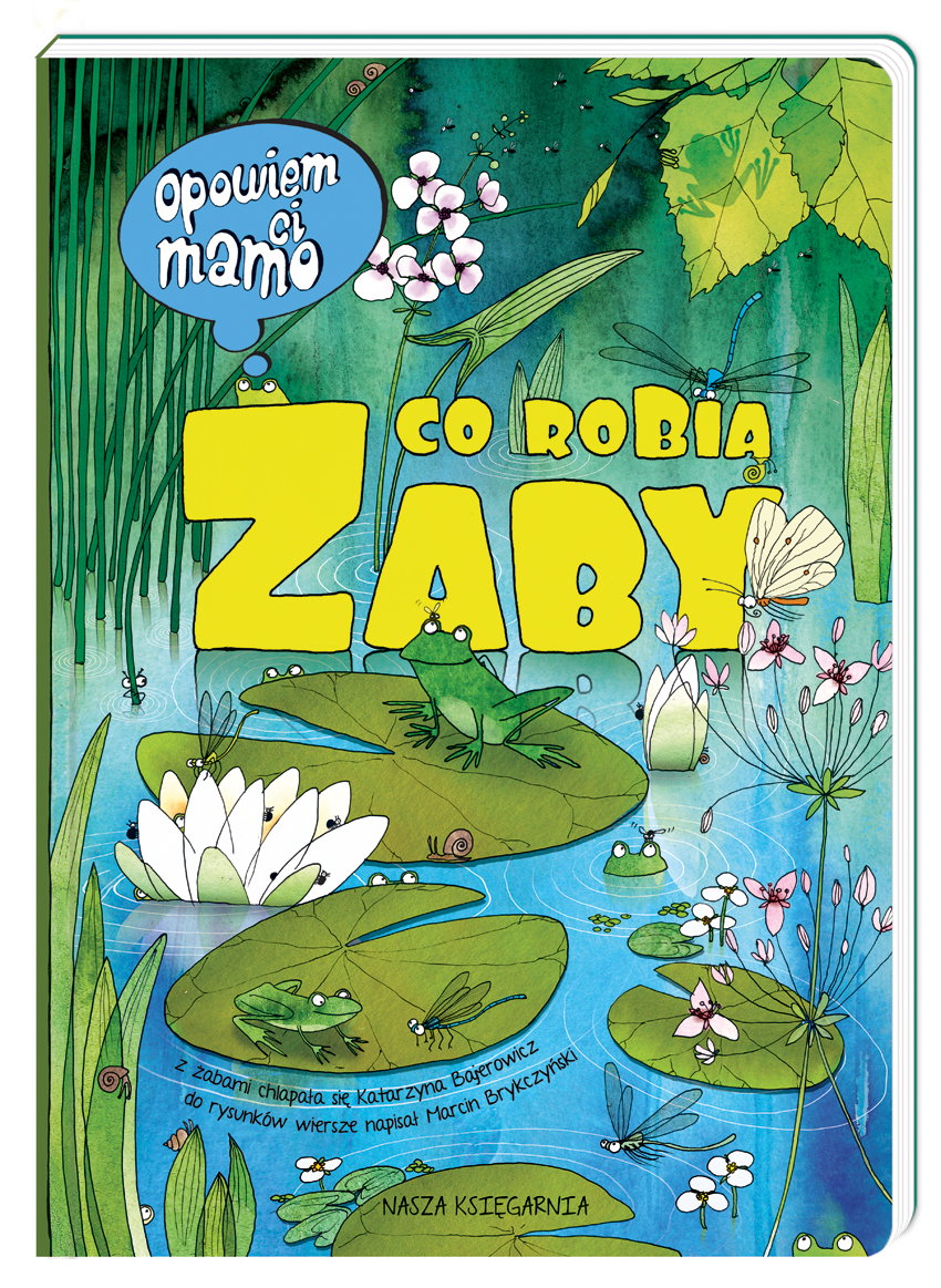 Po budzących zachwyt dzieci i ich rodziców książkach ,,Opowiem ci, mamo, co robią mrówki"" oraz ,,Opowiem ci, mamo, co robią pająki"" przygotowaliśmy kolejny tom tej wyjątkowej serii.Znakomity prezent dla dzieci w wieku od 2 do 6 lat (i starszych). Sztywne kartki (dzięki którym książka przetrwa wielokrotne przeglądanie), poręczny format, a przede wszystkim niezwykłe ilustracje Katarzyny Bajerowicz, którym towarzyszą rymowane zagadki Marcina Brykczyńskiego - to prawdziwe dzieło sztuki!Twoje dziecko z wypiekami na twarzy będzie oglądać ilustracje pełne licznych detali, a na deser rozwiąże ciekawe zagadki. Przy okazji pogłębi swoją wiedzę przyrodniczą, nie tylko na temat różnych gatunków żab.To książka nie tylko do czytania, ale głównie do oglądania, zgadywania i opowiadania. Ćwiczy spostrzegawczość dziecka, umiejętność opowiadania, pobudza zainteresowanie światem, ale przede wszystkim jest fantastyczną zabawą oraz sposobem na miłe i twórcze spędzenie czasu.