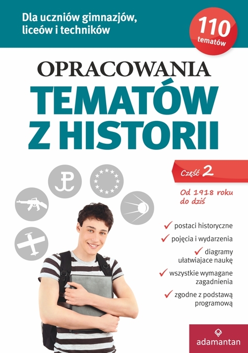 Książka uzupełniająca dowolny podręcznik, zawiera napisane przez doświadczonych nauczycieli opracowania 110 tematów z historii. Uwzględnione zostały wymagania szkolne oraz obowiązujące standardy egzaminacyjne. W każdym opracowaniu przedstawiono najważniejsze wydarzenia, wymieniono czynniki, które wpłynęły na ich przebieg, zwięźle ukazano ich skutki i znaczenie. Ułatwieniem w nauce są krótkie definicje pojęć, których znajomość jest wymagana przy każdym temacie, spis postaci, które się z nim wiążą, zestawienie dat, które trzeba zapamiętać, a także diagramy, pomagające powiązać ze sobą różne fakty. Książka idealnie nadaje się do bieżących powtórek przed lekcją, a także do systematycznej nauki przed egzaminem. Przeznaczona dla uczniów liceów i techników.