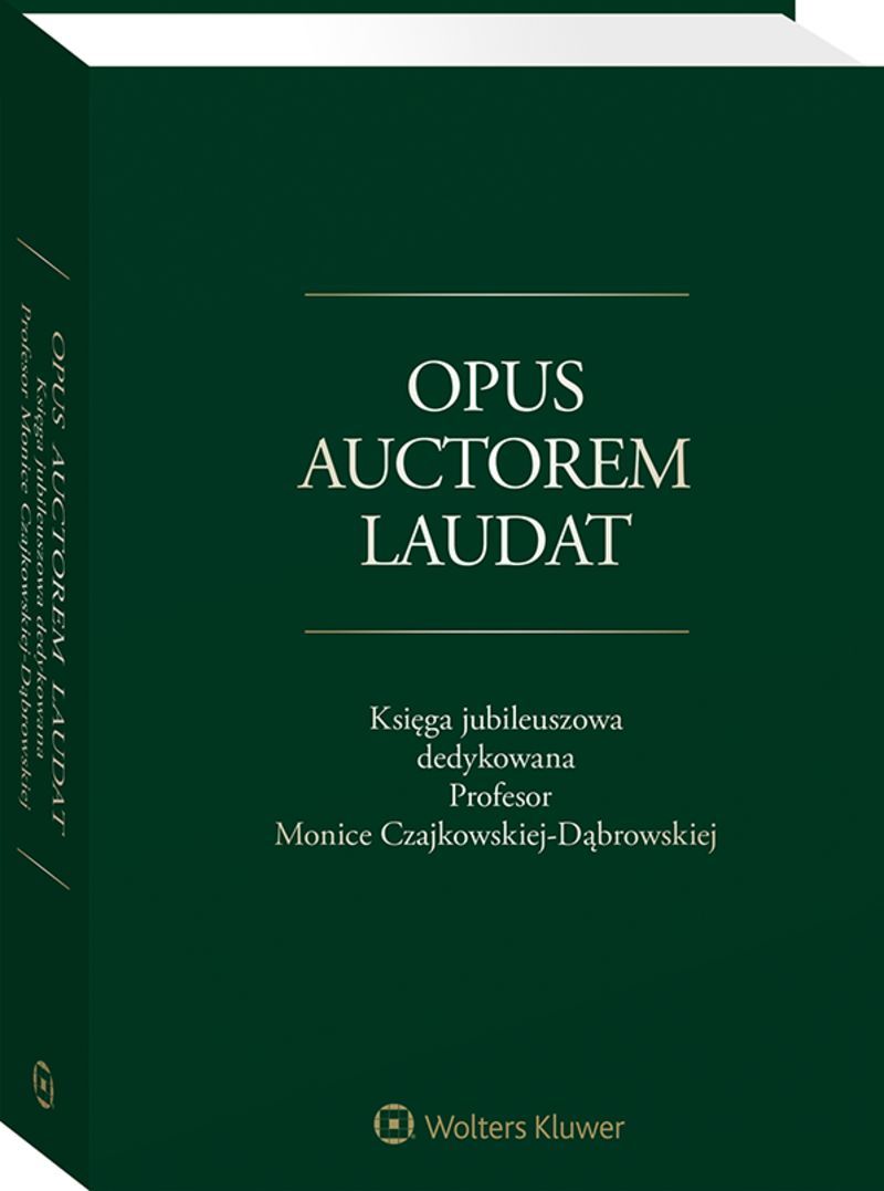 Prezentowana księga powstała dla uczczenia jubileuszu 50 lat pracy naukowej Profesor Moniki Czajkowskiej-Dąbrowskiej. Stanowi ona wyraz uznania środowiska akademickiego dla dorobku naukowego Jubilatki i jego doniosłego znaczenia dla polskiej doktryny prawa własności intelektualnej. Znakomitość warsztatu i bezkompromisowość w dążeniu do doskonałości naukowej to cechy charakterystyczne dla twórczości Jubilatki. Są to także wymagania, które Jubilatka ma wobec dyskursu naukowego. Tytuł księgi Opus auctorem laudat jest nawiązaniem do powyższych wartości. Księga stanowi zbiór esejów autorstwa znakomitych specjalistów, które uporządkowane zostały w działach tematycznych nawiązujących do zagadnień, które podejmuje w swych publikacjach Jubilatka. Część pierwsza księgi poświęcona jest problematyce prawa autorskiego, praw pokrewnych oraz prawa mediów. Część druga zawiera artykuły dotyczące problematyki prawa własności przemysłowej. W części trzeciej czytelnik znajdzie artykuły poświęcone zagadnieniom horyzontalnym (przekrojowym), wspólnym dla poszczególnych obszarów prawa własności intelektualnej. Ostatnia, czwarta część poświęcona jest rozmaitym zagadnieniom z zakresu „klasycznego” prawa cywilnego oraz prawa handlowego.