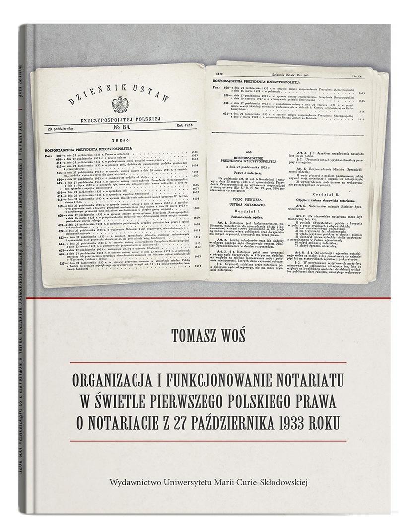 Problematyka dotycząca organizacji i funkcjonowania notariatu w świetle pierwszego polskiego prawa o notariacie z 27 października 1933 roku jest niezwykle istotna. Regulacja ta stanowiła wielkie osiągnięcie legislacyjne i już w okresie międzywojennym była nazywana konstytucją polskiego notariatu. Dzięki niej po raz pierwszy w całej dotychczasowej historii notariat polski został zorganizowany na jednolitych, ogólnopolskich zasadach prawnych. Zasadniczym celem monografii jest zaprezentowanie organizacji i funkcjonowania notariatu w świetle prawa o notariacie z 27 października 1933 roku. W szczególności podjęto w niej próbę odpowiedzi na pytanie, jakie są zalety i wady pierwszej polskiej regulacji ustrojowej notariatu i jaka była na gruncie tej regulacji ocena pozycji ustrojowej notariusza, jego faktyczna rola i zadania w państwie i społeczeństwie. W opracowaniu szczególną uwagę poświęcono analizie wpływu II wojny światowej i działań podejmowanych w okresie powojennym przez nowy aparat władzy na tradycyjny model notariatu wykształcony na gruncie rozporządzenia z 1933 roku. Zaprezentowano również wnioski na temat tego, jakie znaczenie i rolę odegrało pierwsze polskie prawo o notariacie w kształtowaniu się tej instytucji w Polsce oraz jaki ma wpływ na współczesną regulację ustrojową notariatu.