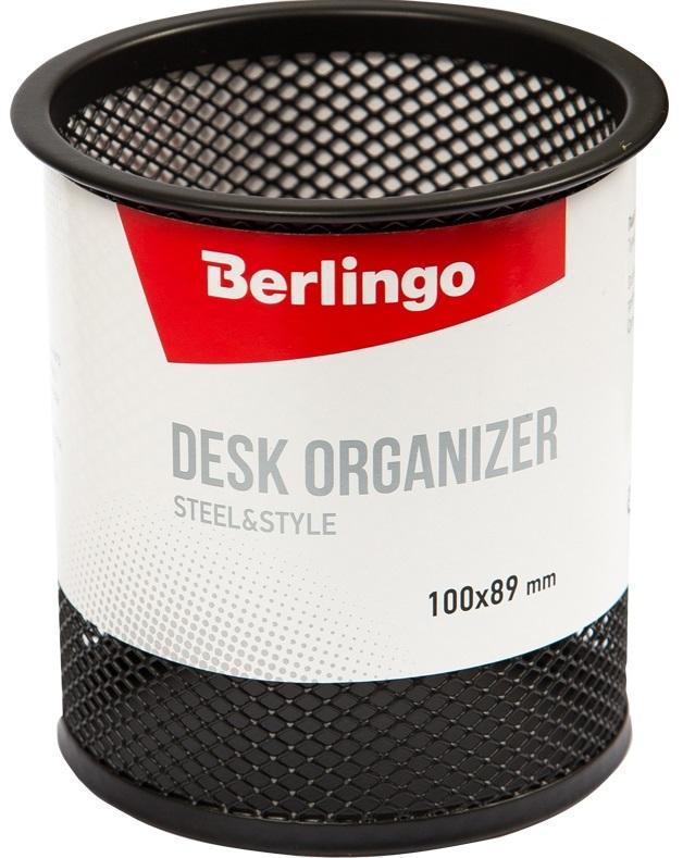 Pojemnik kwadratowy na długopisy "Steel & Style". Wymiar 98mm x 80mm x 80mm. Stylowy i praktyczny metalowy stojak-organizator Berlingo Steel & Style przeznaczony jest do przechowywania długopisów oraz innych artykułów biurowych. Wytrzymała obudowa produktu wykonana jest z wysokiej jakości metalowej siatki pokrytej matowym czarnym lakierem a siateczkowa konstrukcja zapobiega przedostawaniu się kurzu do środka. Na spodzie znajdują się miękkie podkładki, które zapobiegną przesuwaniu się przedmiotów i nie uszkodzą powierzchni biurka.