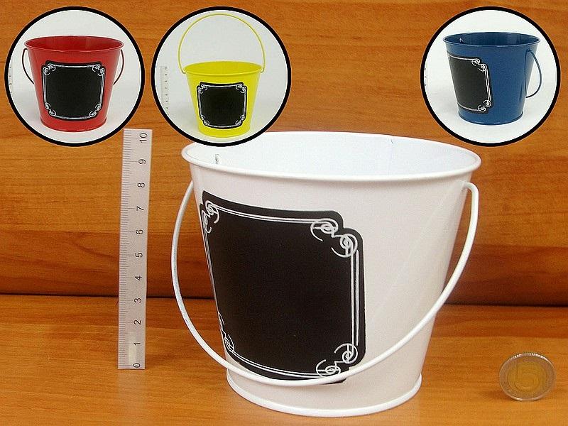 wiaderko na kredki, metalowe z polem do pisania kredą; 12x10cm, PPB MIX