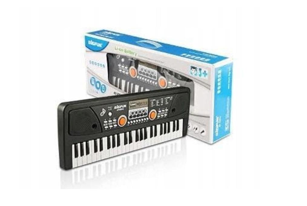 Organki z mikrofonem: 49 klawiszy, 5 perkusji, 8 rytmów, 16 tonów, 6 demo, mikrofon, regulacja głośności, zasilanie 3.7V + ładowarka USB (w zestawie).