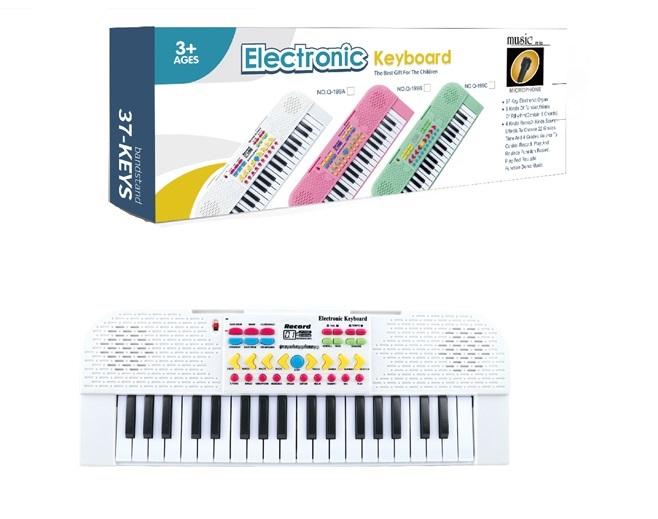 W zestawie: organy 41 x 16 cm, mikrofon, kabel USB, funkcje: 8 różnych rytmów, dźwięki perkusyjne, 8 przycisków odpowaiadających za zmianę instrumentu, regulacja głosności, przycisk zmiany tempa, funkcja demo, funkcja nagrywania i odtwarzania, 3+