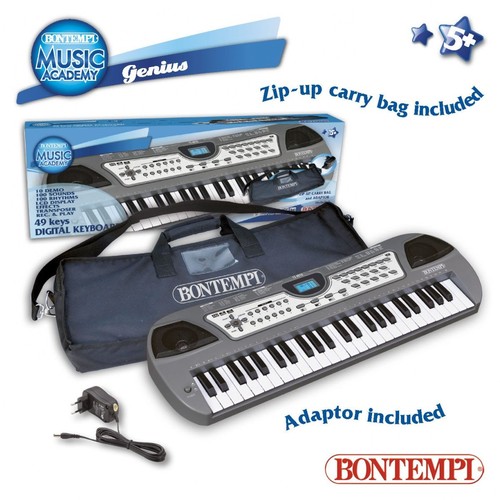 Organy elektroniczne włoskiej firmy Bontempi. Instrument zawiera: 49 midi klawisze (C-C), 100 dźwięków, 100 rytmów, 4 „pady” perkusyjne, 10 melodii, funkcję nagrywana i odtwarzania, regulację głośności oraz tempa, funkcję automatycznego wyłączania. Wyświetlacz LCD, wejście USB, możliwość wgrywania oraz zgrywania utworów w formacie MP3. Materiałowy pokrowiec w zestawie.