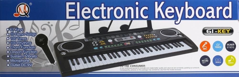 Zalety produktu: elektroniczne organy posiadają dodatkowe efekty dźwiękowe w postaci melodii- uruchamiane za pomocą przycisków, regulację głośności, tryb wyboru tonu, przycisk dodawania kolejnych tonów, posiada tryby SUSTAIN, CHORD, CHORD OFF, SYNCH, posiada możliwość programowania, nagrywania, można odtwarzać nagraną melodię, posiada gotowe nagrane melodie. Bardzo ważną rolą w życiu każdego z nas odgrywa zmysł słuchu. Za pomocą dźwięków rozwijamy swój umysł. Dzięki Organom MEGA CREATIVE Twoje dziecko pokocha Muzykę i być może w przyszłości zostanie gwiazdą estrady! Zawartość zestawu: elektroniczne organy, mikrofon do podłączenia za pomocą kabla USB, ładowarkę USB. Wymiary/waga/baterie: wymiary produktu (dł. x wys. x gł.)[cm]: 70x7x23,wymiary opakowania (dł. x wys. x gł.) [cm]: 72x23x8, waga produktu bez opakowania [kg]: 1,26 kg, waga produktu w opakowaniu [kg]: 1,51 kg, wymaga zasilania bateriami 6 x AALR06 1,5V -nie załączono do zestawu. Zabawka przeznaczona dla dzieci w wieku: 14+. Zabawka pakowana w kartonik.