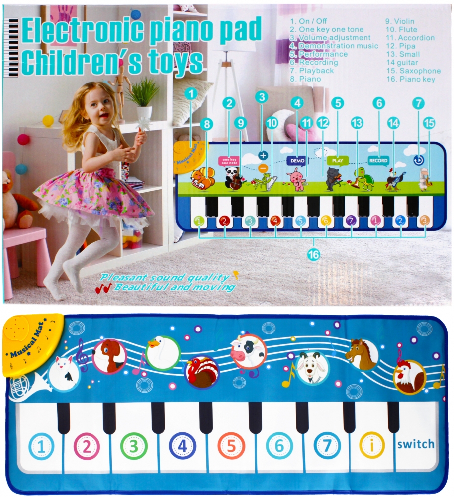 Mata posiada funkcję dźwiękowe, regulacje głośności, nagrywanie, odtwarzanie, piękna i demonstracyjna muzyka grana jak na prawdziwym pianinie to tylko niewiele zalet tej fantastycznej maty.