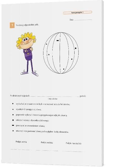 Ortograffiti z Bratkiem. Karty pracy. Klasa 2 W komplecie znajdują się 32 karty pracy, po jednej do każdego bloku ćwiczeń zawartych w zeszytach ćwiczeń w wersji "90 minut" oraz "45 minut" - w przypadku pracy z tą wersją 28 kart jest skorelowanych z zeszytem ćwiczeń, a 4 karty zawierają treści dodatkowe. Zestaw zawiera karty postępów i karty pracy domowej. Jest to dodatkowa pomoc w prowadzeniu zajęć. Możecie wypełnić z uczniami kartę postępów na koniec każdego bloku, natomiast karty pracy domowej pozwalają dzieciom utrwalić wiadomości z danych zajęć w ramach pracy domowej. Dodatkowo w zestawie znajdują się karty z pomocami dydaktycznymi do samodzielnego wykonania: linijka z alfabetem, okienko do czytania, a także: symetryczne wycinanki, rymowanki ułatwiające zapamiętanie kolejności liter w alfabecie, dyplom oraz pomoce ortograficzne utrwalające pisownię wyrazów z trudnościami. Karty gwarantują, w połączeniu z zeszytami ćwiczeń, kompleksowe zastosowanie Metody Ortograffiti.