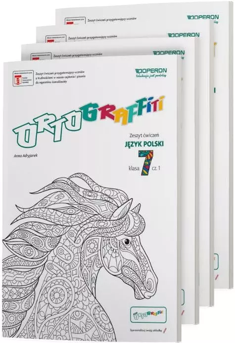 Zestaw ćwiczeń dla uczniów klas 7 i 8 mających trudności w uczeniu się: Ortograffiti. Język polski. Część 1. Klasa 7 Ortograffiti. Język polski. Część 2. Klasa 7 Ortograffiti. Język polski. Część 1. Klasa 8 Ortograffiti. Język polski. Część 2. Klasa 8 Praca Metodą Ortograffiti z użyciem zeszytów Ortograffiti. Język polski zwiększy kompetencje ucznia w obszarze czytania, pisania, rozumienia dłuższego tekstu oraz poleceń, a także przetwarzania i wykorzystywania informacji w różny sposób. Ponadto zadania mają na celu usprawniać i kompensować funkcje poznawcze, takie jak: koncentracja uwagi, orientacja w przestrzeni, funkcje wzrokowe, ruchowe i słuchowe, a także doskonalić ucznia w trudnej dla niego materii grafii, ortografii i interpunkcji. W efekcie pracy uczeń zwiększy poziom wiedzy i umiejętności koniecznych do uzyskiwania pozytywnych ocen z przedmiotów szkolnych, właściwych dla jego potencjału oraz przezwyciężać trudności w uczeniu się nie tylko języka polskiego, ale też innych przedmiotów. Zadania w zeszytach zostały tak opracowane, by przygotować ucznia z trudnościami do egzaminu ósmoklasisty. Uczeń podczas pracy metodą: doskonali umiejętność czytania, w tym głośnego, z zaangażowaniem emocjonalnym w tekst, doświadcza i obcuje ze szczególną składnią, przekształca i modyfikuje składnię - ćwiczenie składni, ćwiczy styl, trenuje pisanie na zadany temat, poznaje najróżniejsze słowa i zwroty, powiedzenia, frazeologizmy, gromadzi zasób słów - buduje własny słownik, poznaje synonimy, antonimy, neologizmy, utrwala i uzupełnia wiadomości z zakresu gramatyki, stylistyki, ortografii i interpunkcji, obcuje z tekstami o różnej funkcji i stylu (literackie, informacyjne, publicystyczne, definicje), rozwija umiejętności twórcze i wyobraźnię, a także myślenie, zwłaszcza nierutynowe.