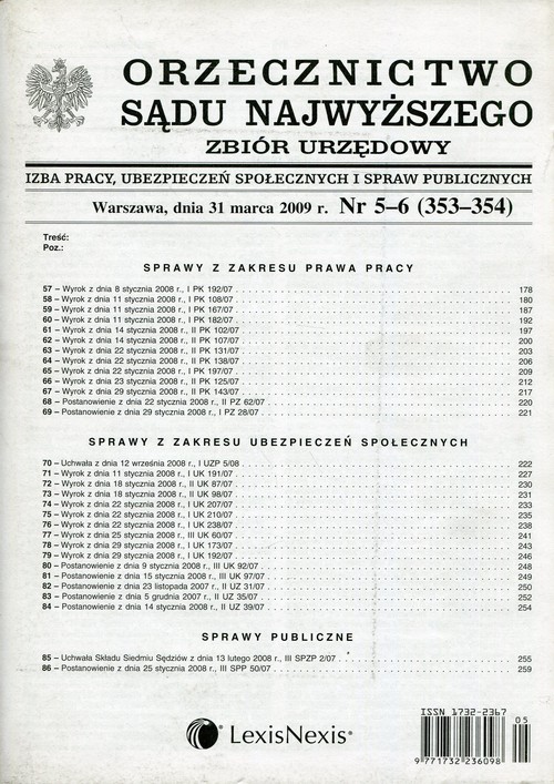 Orzecznictwo Sądu Najwyższego 5-6/2009 Zbiór urzędowy Sprawy z zakresu Prawa pracy Sprawy z zakresu Ubezpieczeń społecznych Sprawy publiczne