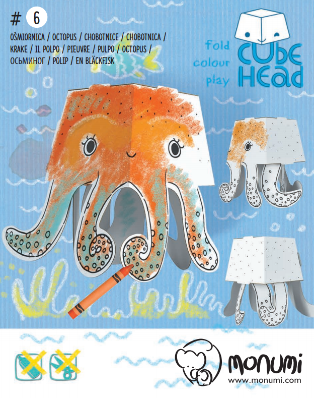 Kartonowy model ośmiornica MONUMI CUBE HEAD do składania i kolorowania
