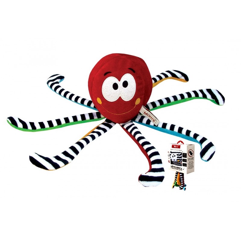 Mięciutka, materiałowa i kontrastowa ośmiornica z dźwiękami prenatalnymi od Mom's care została stworzona z myślą o  najmłodszych. Przytulanka kontrastowa emituje dźwięki prenatalne, które  maluch słyszał będąc jeszcze w Twoim brzuchu. Bicie serca mamy, szum wód płodowych wpływają na niemowlaka uspokajająco i relaksująco. Dzięki  dźwiękom prenatalnym niemowlę lepiej się rozwija, jest spokojniejsze  oraz łatwiej i szybciej zasypia.  Dziecko będąc w brzuchu, chwyta pępowinę. Macki ośmiornicy mają mu ją przypominać. Kiedy potrzesz ośmiornicę o swoją skórę i położysz ją obok swojego maleństwa wzbudzisz w nim poczucie bezpieczeństwa i komfortu, które towarzyszyły mu  przez ostatnie 9 miesięcy.
