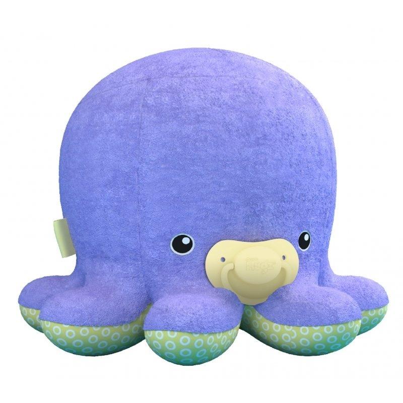 Ocean Hugz - Maskotka Ośmiorniczka i Projektor Latarnia Morska DKM6876. Gdy przytulisz pluszaka, latarnia morska zaczyna grać kołysanki i świecić. Możliwe jest również włączenie samej latarni morskiej, bez konieczności przytulania pluszaka. Latarnia Morska gra kołysanki, świeci delikatnym światłem i wyświetla gwiazdki na suficie. Posiada okrągłą podstawę, dzięki której może się delikatnie kołysać. Ośmiorniczka w kolorze fioletowym posiada żółty, plastikowy smoczek. Latarnia rozświetli pokój i ukołysze Twoje dziecko do snu.