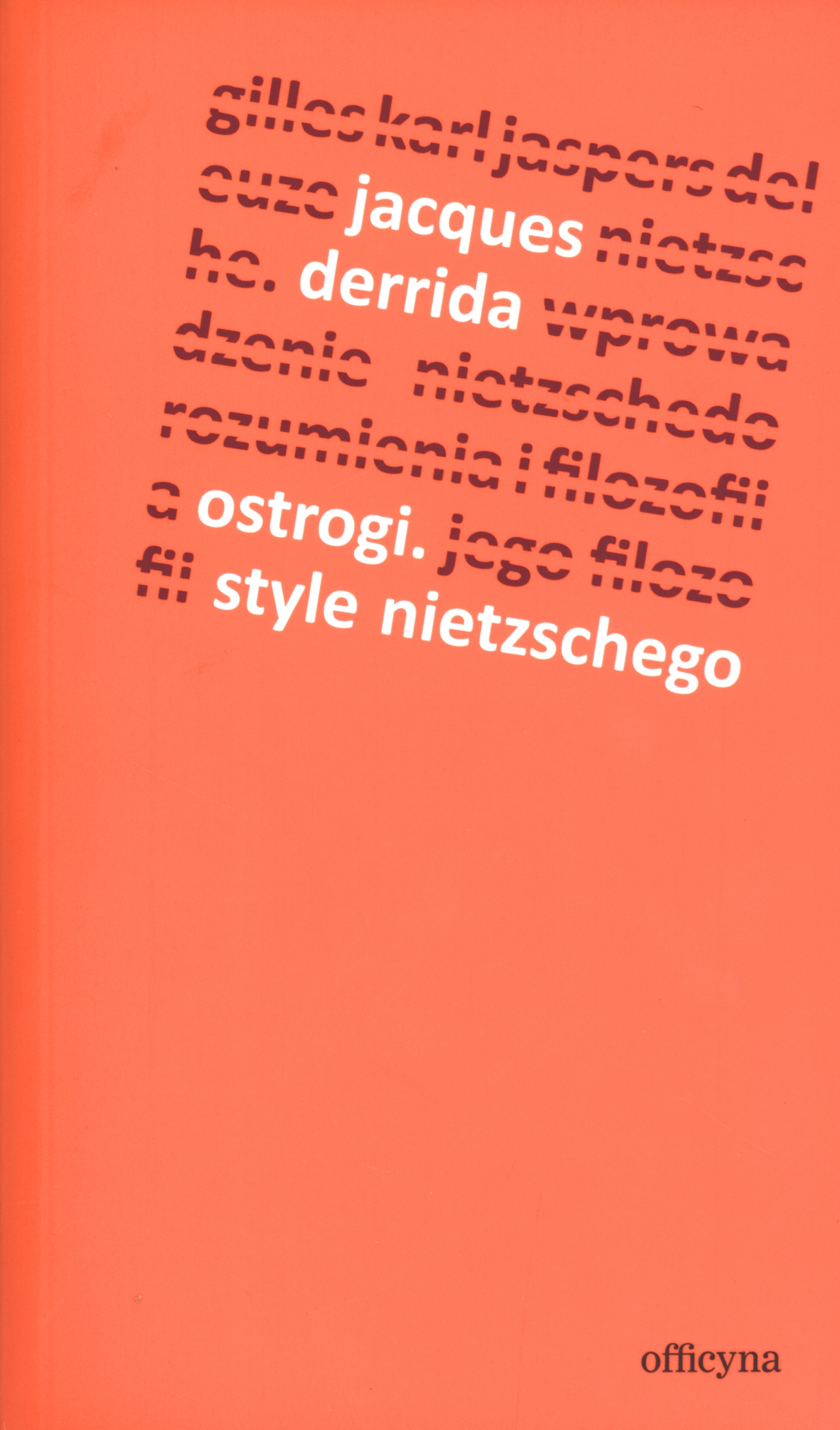 Choć źródła i inspiracje dekonstrukcji są raczej husserlowskie i heideggerowskie, to Derrida myśli przeciw Husserlowi i (przy całej ambiwalencji) Heideggerowi (oraz przeciw Heglowi i Platonowi), a wespół z Nietzschem - choćby nawet myśl tego ostatniego sprowadzała się dlań głównie do poziomu tekstualnego - bo to Nietzsche ustanowił filozofię jako styl, jako wielość stylów. Ostrogi, jedna z najciekawszych prac francuskiego filozofa, to tropy jego lektury pism Nietzschego zapośredniczonej częściowo w Heideggerowskim odczytaniu ""wielkiego filologa"", a więc to ślady interpretacji interpretacji, rozchwiania metafizyki obecności (w korelacji z Nietzscheańskim projektem ""obalenia platonizmu"") - tego zatem, czym w istocie jest dekonstrukcja, jakkolwiek tak jak ""nie ma prawdy Nietzschego"", tak też nie ma prawdy Derridy, albo też obie te ""prawdy"" (i nie tylko te) są typu ""zapomniałem mego parasola"". Spektakularne i błyskotliwe odczytanie Derridy pokazuje dzieło Nietzschego jako antysystemową i antydogmatyczną gamę wielości, wieloznaczności, heterogeniczności, aporetyczności oraz retoryczno-performatywnych wysiłków krytycznego zmagania się z metafizyką i kilkoma dla niej podstawowymi kategoriami, zwłaszcza ""prawdą"", uwydatniając przy tym nierozstrzygalność i niezdecydowanie. Fragment