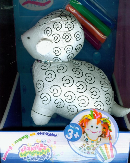 Zestaw składa się z maskotki oraz 4 markerów do kolorowania (niebieski, zielony, pomarańczowy, różowy). Zabawki można kolorować, prać i zmywać na okrągło. Niesamowita zabawa dla każdego dziecka. Zabawka kreatywna rozwija zdolności manualne, twórczość oraz wyobraźnię.