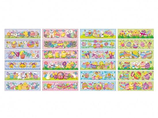 Opakowanie zawiera 12 szt. dekoracji wielkanocnych - owijek na jajka. Sposób użycia: Na schłodzone ugotowane jajko nałożyć owijkę, następnie położyć na łyżkę i zanurzyć na 3 sekundy we wrzącej wodzie. Owijka natychmiast przylgnie do jajka. Produkt jest nieszkodliwy dla zdrowia. Wymiar: 165mm x 205mm x 1mm (szer. x wys. x gł.)