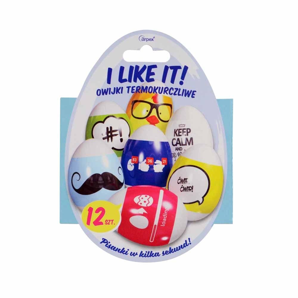 Owijki termokurczliwe z nowowczesnymi, zabawnymi wzorami nawiązującymi do mediów społecznościowych. Idealne do błyskawicznego przygotowania wielkanocnych pisanek. 12 sztuk. Na opakowaniu znajduje się instrukcja użycia.