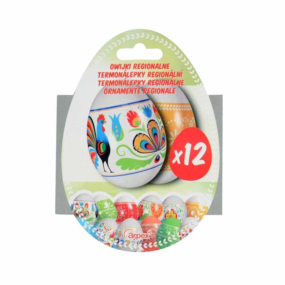 Owijki termokurczliwe z tradycyjnymi, ludowymi wzorami idealne do błyskawicznego przygotowania wielkanocnych pisanek. 12 sztuk. Na opakowaniu znajduje się instrukcja użycia.