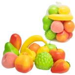 Owoce - 12 elem. Jabłko zielone, jabłko czerwone, gruszka, mango, truskawka, cytryna, pomarańcza, brzoskwinia, granat, banan, karambola, graviola owoc o średnicy ok.7.5 cm wymiary opakowania(ażurowa siatka) 19 x 12 x 25 cm