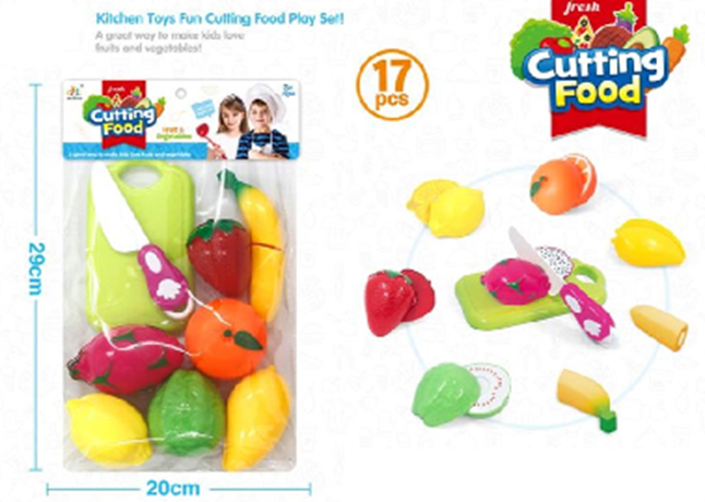 W zestawie znajdują się popularne owoce i warzywa, które różnią się kolorem, formą i wielkością, dlatego też idealnie nada się do nauki kolorów i kształtów.