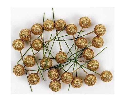 Owoce ostrzokerzewu 12cm złote brokat