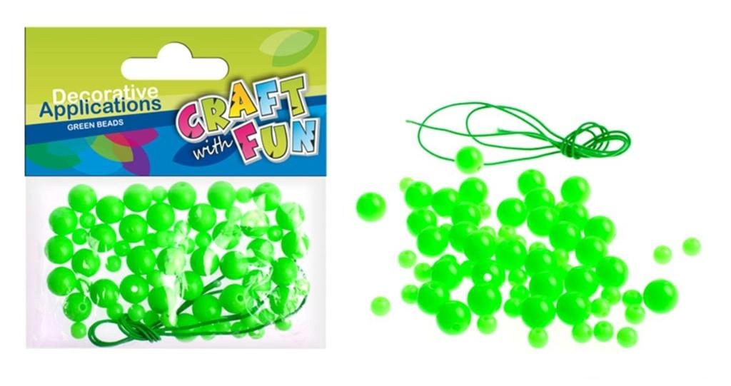 Zalety produktu: Prawie każda dziewczynka uwielbia koraliki i zawieszki. Naśladując swoje mamy, ciocie, przyjaciółki które, noszą eleganckie bransoletki też chcą mieć coś fajnego na swoich rączkach. Craft With Fun proponuje kolorowe koraliki do samodzielnego tworzenia. Samodzielnie stworzona bransoletka jest najcenniejsza i najpiękniejsza. Używaj tego produktu w połączeniu z innymi akcesoriami oraz kompletami z serii Craft With Fun! W opakowaniu znajdują sie zielone koraliki do nawlekania. Do koralików dołączona jest gumka. Produkt jest wykonany z plastiku.