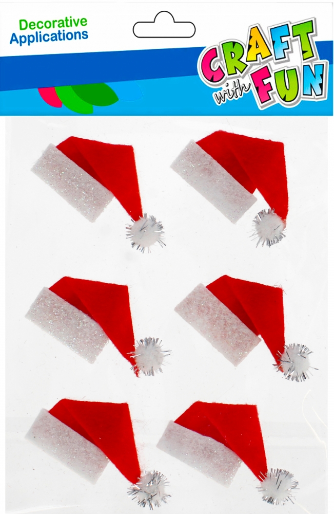 Zalety produktu idealne do zdobienia kartek okolicznościowych, świetnie sprawdzą się również jako element dekoracyjny do pokoju dziecka czy dodatki do prezentów. Opakowanie zawiera 6 sztuk kolorowych filcowych Bożonarodzeniowych ozdób Czapeczka Mikołaja od CRAFT WITH FUN.
