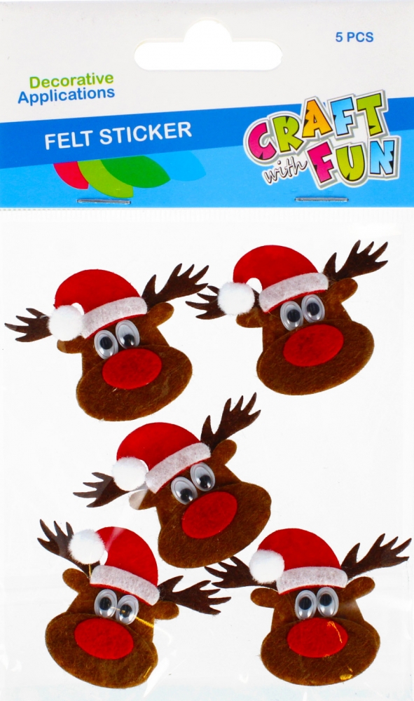 Opakowanie zawiera 5 sztuk kolorowych filcowych Bożonarodzeniowych ozdób Reniferków od  CRAFT WITH FUN.
