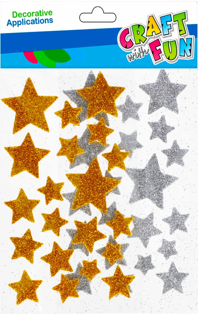 Zawartość opakowania  mix piankowych brokatowych gwiazdek.