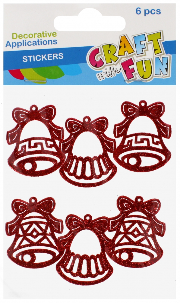 Opakowanie Ozdoba BN naklejki dzwonki brokatowe czerwień 6szt