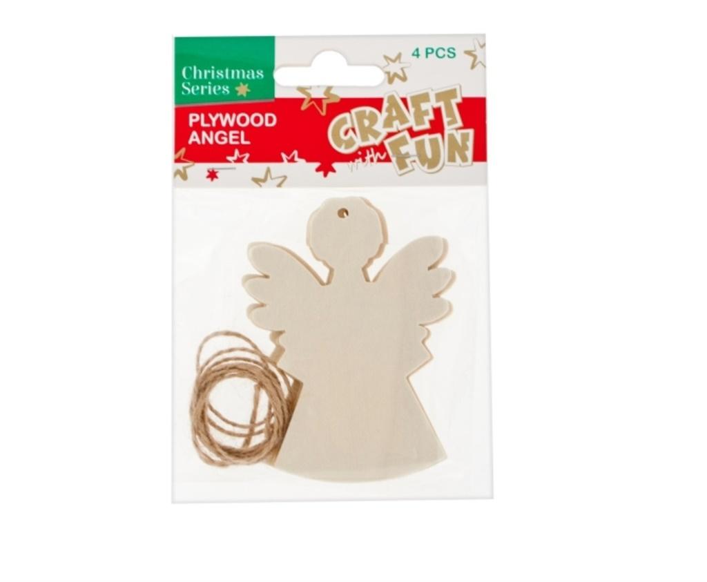 Zestaw 4 drewnianych aniołów wraz ze sznureczkiem. Idealny do dekoracji świątecznych.