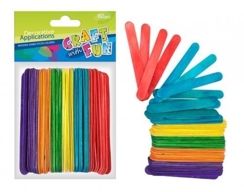 Drewniane kolorowe patyczki. Idealnie nadają się do ozdabiania i tworzenia figurek. W opakowaniu 60szt.